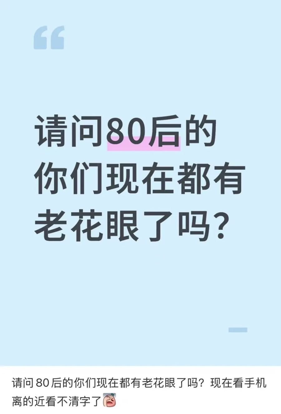 你有莫得手机玩着玩着蓦然目下一糊,对不上焦的情况?曾以为老花眼是爷爷奶奶辈的专属标签,这时辰啊一眨眼,果然也曾轮到80后了。